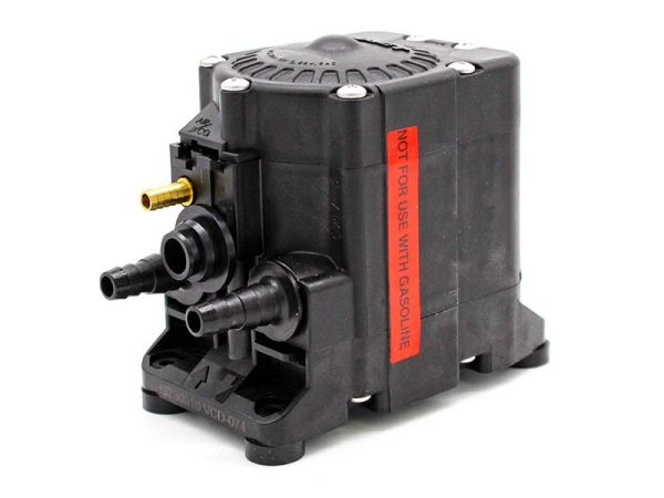 Flojet G57 Series air operated diaphragm pump. The G573205A has a glass filled polypropylene body with FKM diaphragms and 3/8″ straight hose barb ports.