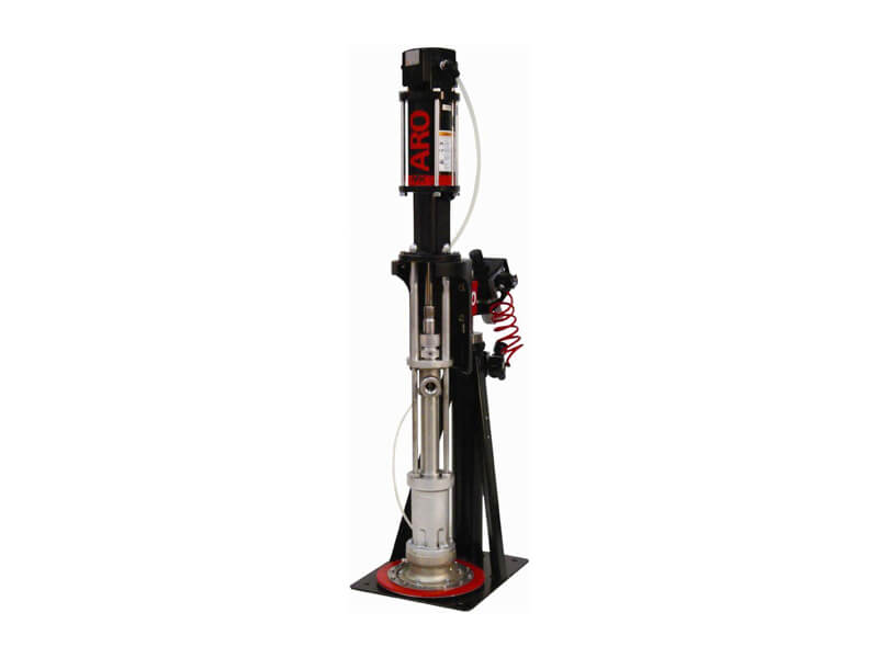 Ideal for medium to heavy viscosity extrusion, ARO’s single post ram with pump, follower plate, and controls allows for easy container changeover while providing industry-leading down force during operation.