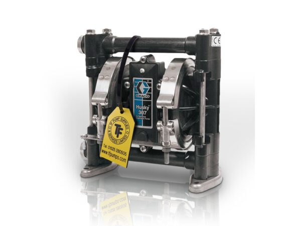 This Graco Husky 307 Acetal diaphragm pump can provide flow rates of up to 24.6 LPM. Featuring a Polypropylene centre section and TPE diaphragms. Part Number: D31255