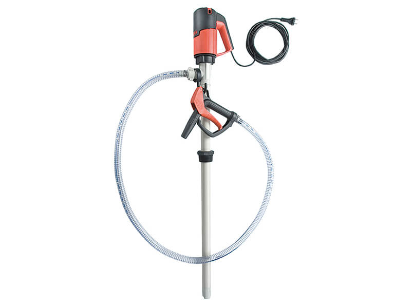 The FLUX F 430 PP-40/33 Drum Pump is a mechanically sealed polypropylene pump designed for transferring acids and alkalis from drums and IBCs. Its robust construction ensures safe handling of media that may harden or crystallise, with a 40 mm outer tube and ETFE/FKM wetted materials for excellent chemical resistance. Suitable for phosphoric acid, hydrochloric acid up to 30%, sulphuric acid up to 40%, alkalis and related compounds. The FEM 4070 motor (230 V, 500 W) offers speed control for precise pumping. This version features a 1200 mm immersion length. Supplied as a complete kit with hose connection, PVC hose, PP nozzle and conductive components for safe, professional use.