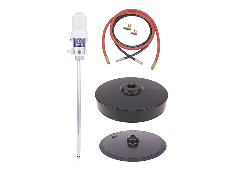 Graco – 246917 – Grease Piston Pump Package comes complete with a 246781 pump from the Mini Fire-Ball 225 series. The pump has a slotted fluid inlet with a 50:1 ratio. Kit also includes: Hose and Fitting Kit, Cover, Follow Plate, Shim.