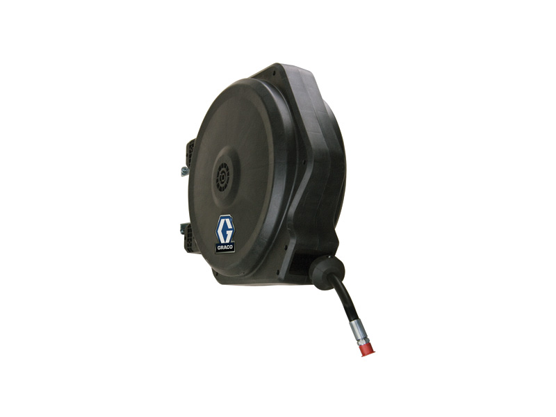 Part No. 24F790: This Graco hose reel is designed for everyday tasks in service garages and dealerships, with a sealed enclosure and adjustable tension.