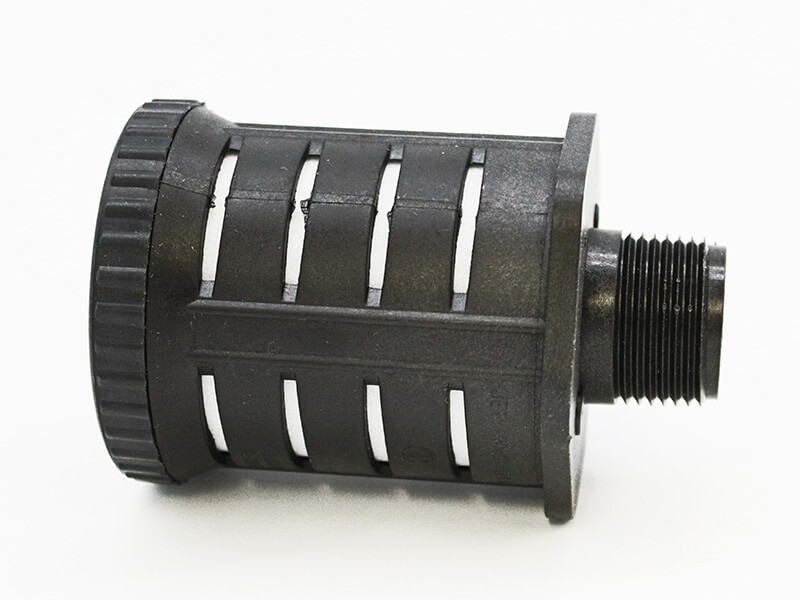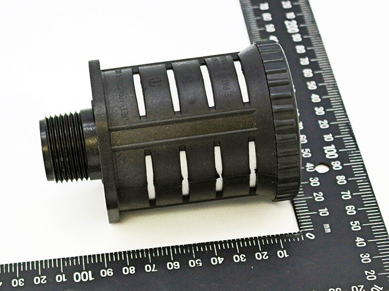 A universal muffler compatible with many leading diaphram pump brands, including Wilden, Sandpiper, Aro, Graco and more.