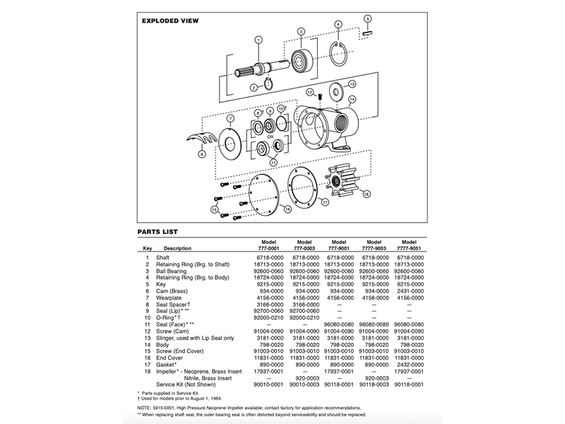 Service Kit contains Seal, O-Ring, Gasket & Impeller
