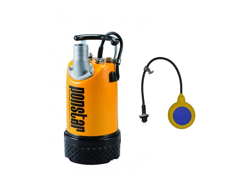 Koshin Ponstar PBX7 submersible pump – 040-702A. 110v pump with a 330 LPM flow rate. This model comes with a float switch.