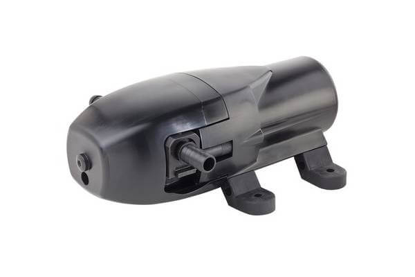 The Flojet LF Plus diaphragm pump (part number RLFP122202E) operates on 12V and features a 3/8 inch inlet for reliable fluid handling. Built with durable Santoprene diaphragms and EPDM check valves, this model is self-priming up to 0.7m vertical lift.