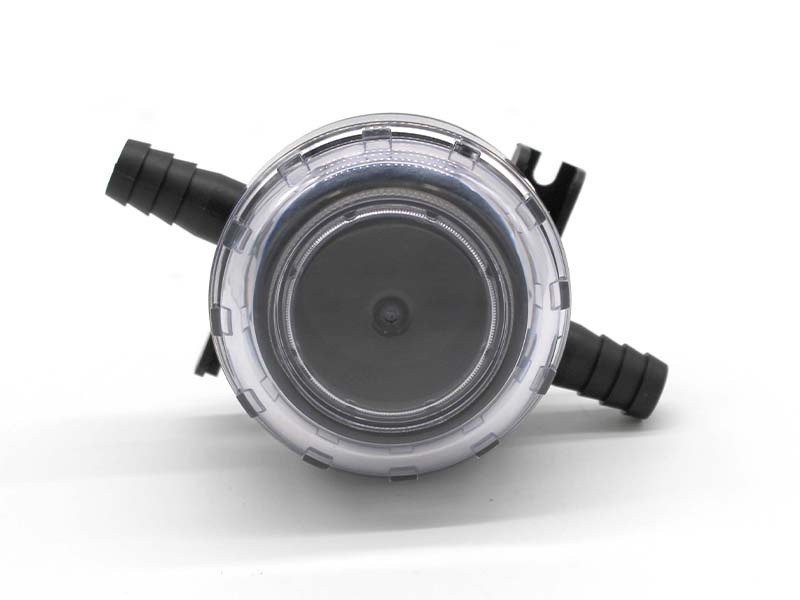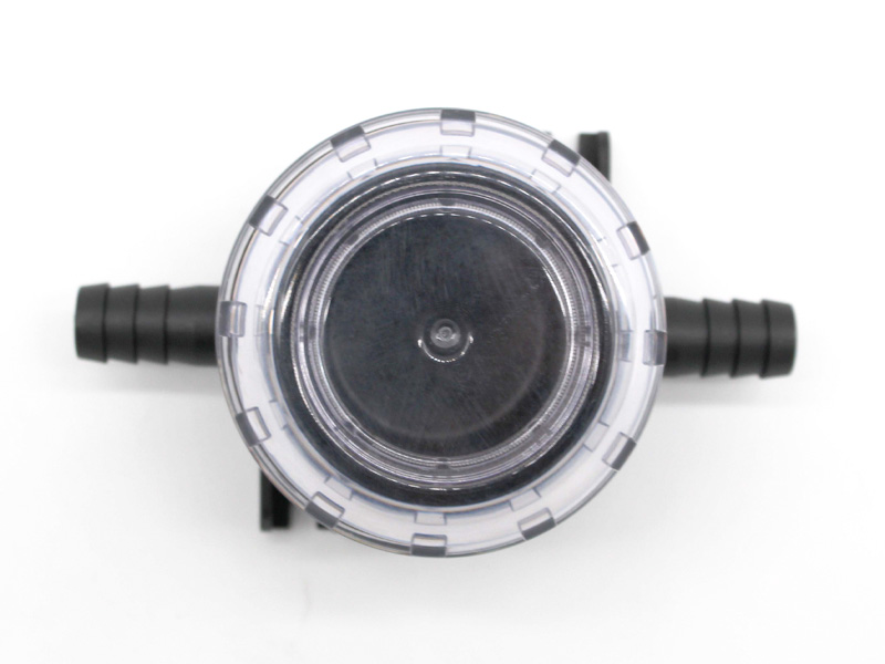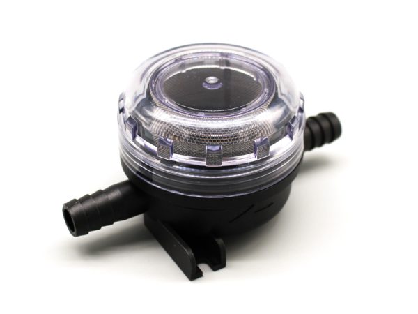 Flojet pump inlet strainer – 1740002 – protects electric pumps by preventing unnecessary pump breakdowns caused by particles in the water. Transparent housing allows instant inspection. Screw off top allows quick in-place cleaning and removal of debris.