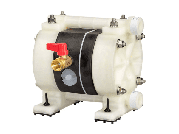 This Yamada NDP-5FPT 1/4″ Polypropylene Air Operated Diaphragm Pump has 1/4″ BSP connections, PTFE diaphragms, PTFE Flat Valve and Glass Reinforced Polypropylene seats. All Yamada pumps feature bolted construction, which eliminates leaks and simplifies post-maintenance reassembly.