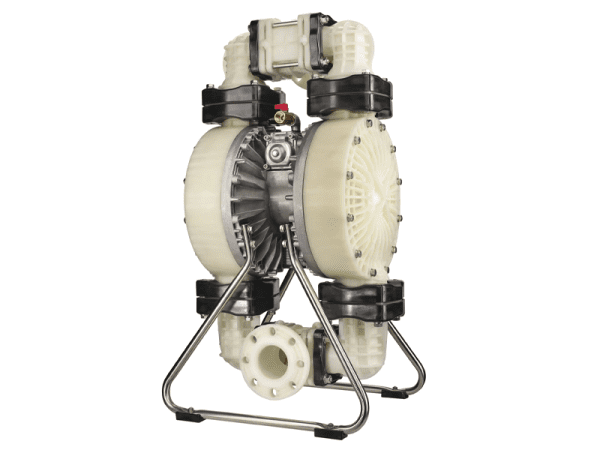 This Yamada NDP-80BPT 3″ Polypropylene Air Operated Diaphragm Pump has 3″ Flange connections, PTFE diaphragms, PTFE balls and Glass Reinforced Polypropylene seats. All Yamada pumps feature bolted construction, which eliminates leaks and simplifies post-maintenance reassembly.